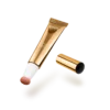 Appliquez l'enlumineur sur les pommettes, le menton, l'arête du nez et l'arcade sourcilière en appuyant légèrement sur le tube pour libérer le produit qui imprégnera l'éponge. Estompez délicatement vers les tempes du bout des doigts ou avec un pinceau. Modulez l'intensité en appliquant plus ou moins de produit.